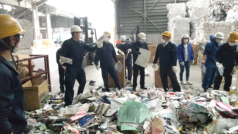 3月27日、安全衛生会議(グループ内の定例会議)を横須賀事業所を会場として実施しました。雑誌古紙を中心に、最近の動向を踏まえて現場での選別実習を行いました。品質や事業所での指導方法などに事業所の責任者が共通の認識を持ち、レベルアップにつながる会議になったと期待しています。グループ全体の品質向上に今後も取り組んで参ります。