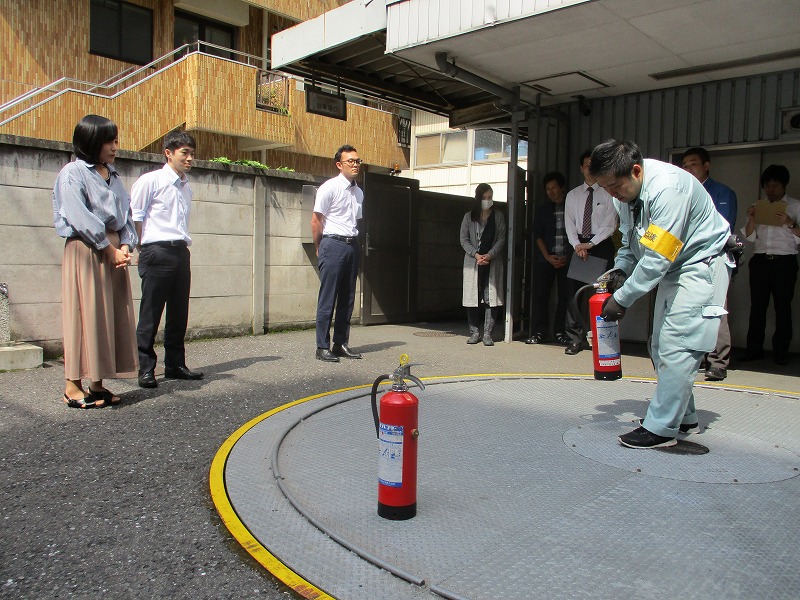 火災発生時の避難経路の確認、消火器の仕様訓練を実施しました。