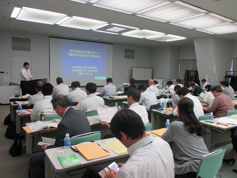 今回は「熱中症防止対策セミナー(中央労働災害防止協会主催)」を受講しました(國光13名/全体約40名)。
